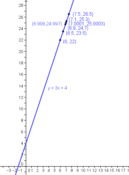 en la función f(x)=3x+4, a qué valor tiende “y” cuando “x” tiende a 7