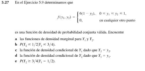 $$\begin{align}&f_1(y_1)=6\int_{y_1}^{1}(1-y_2)dy_2=6\left[ y_2-\frac{y_2^2}{2} \right]_{y_1}^1 =\\ &\\ &\\ &6\left(1-\frac 12-y_1+\frac{y_1^2}{2}\right)= \frac{6(y_1^2-2y_1+1)}{2}=\\ &\\ &3(y_1-1)^2;\;\;\;si\;0\le y_1 \le 1;\;\; 0\;en\;el\; resto\end{align}$$