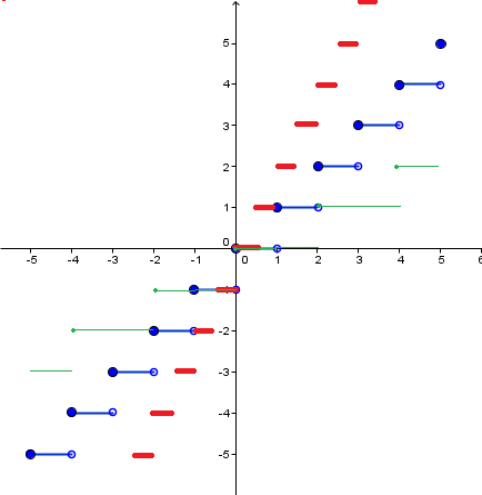 c) graficar la función f(x)= [x/2] en el intervalo [-5,-5]