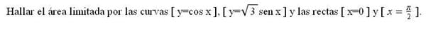 Las rectas y curvas son las de la siguiente imagen y el área que me preguntan a mi entender es la que he sombreado.