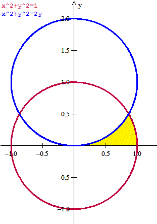 $$\begin{align}&y^2-2y+x^2=0\\ &\\ &y=\frac{2-\sqrt{4-4x^2}}{2}=1-\sqrt{1-x^2}\end{align}$$Entonces los límites superiores tras el cambio serán