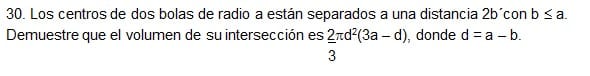 $$\begin{align}&V=\int_b^a \pi(a^2-x^2)dx=\\ &\\ &\pi\left[a^2x-\frac{x^3}{3} \right]_b^a=\\ &\\ &\pi\left(a^3-\frac{a^3}{3}-a^2b+\frac{b^3}{3}\right)=\\ &\\ &\frac{\pi}{3}(3a^3-a^3-3a^2b+b^3)=\\ &\\ &\frac{\pi}{3}(2a^3-3a^2b+b^3)\\ &\\ &\text{No olvidar que esto era la mitad del volumen que dicen}\\ &\\ &V_{total}=\frac{2\pi}{3}(2a^3-3a^2b+b^3)\end{align}$$Y en el ejercicio nos dan una expresión distinta por usar d, vamos a ver que son lo mismo. Solo queda demostrar que
