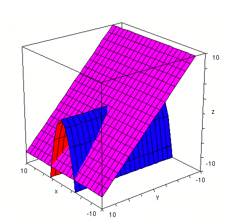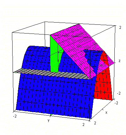 Este programa no es muy bueno ya que solo puede representar superficies z = f(x, y) con lo cual el plano y=0 no se puede dibujar, pero lo imaginamos, es uno vertical perpendicular a la linea de abajo donde pone y.