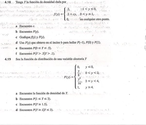 a) Debemos calcular c de modo que la integral definida de la función de densidad entre -oo y +oo sea 1. Como fuera del intervalo [-1, 1] f(y) vale 0 tiene que valer 1 la integral definida entre -1 y 1.