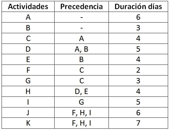 Usa el método de la ruta crítica (CPM) para encontrar: