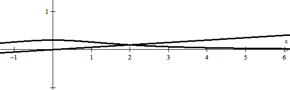 Entonces los límites en x son x=0 y x=2. Ya que es en x=2 donde se cortan, eso se puede comprobar numéricamente