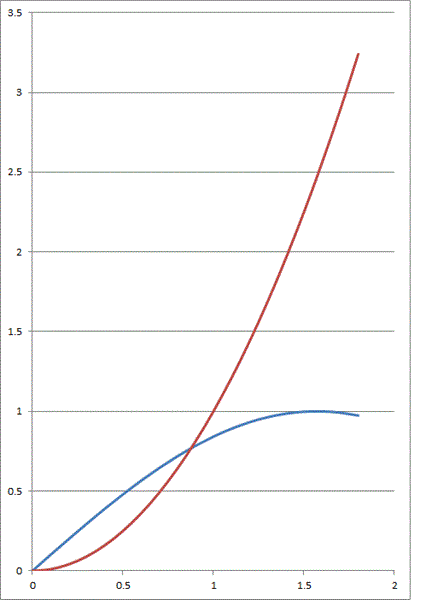 Aquí tienes un ejemplo de lo que me salió para las funciones senx y x^2, Aumente la altura para que más o menos la escala en Y fuera como la X, aun así me quede corto. Es otra de las desventejas de usar Excel, por eso te recomiendo que uses otro programa.