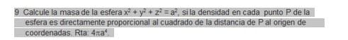 Y la integral definida de esta función entre 0 y a nos dará la masa de toda la esfera. Es tan inmediata que no usaremos el editor de ecuaciones