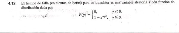 2) lim y -->+oo de F(y) = 1 - e-(+oo) = 1 - 1/e^(+oo) = 1 - 1/(+oo) = 1 - 0 = 1