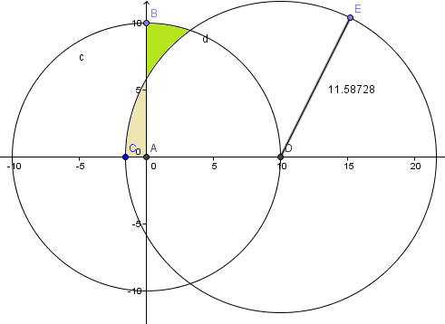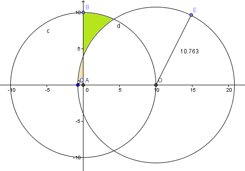 Cálculo de superficie entre dos círcunferencias secantes