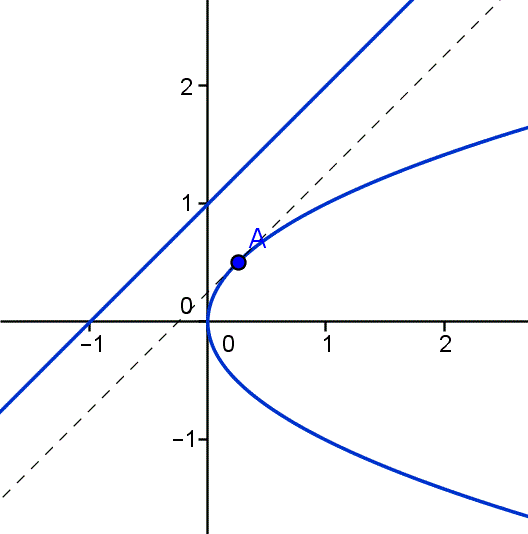Derivamos sqrt(x) para hallar el punto con derivada 1, lo mismo que la pendiente de la recta