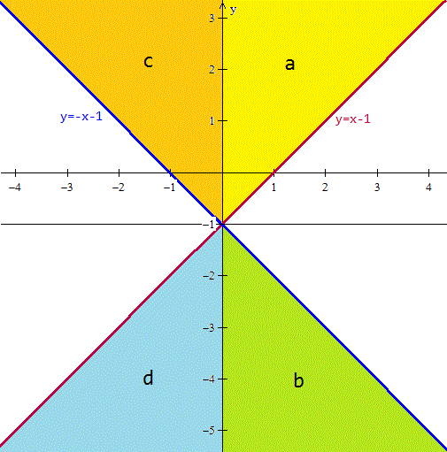 c) -x <= y+1 , y >= -x-1 , si x<0 , y>=-1 superior