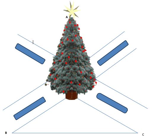 Se va a colocar un árbol de navidad en la esquina de dos calles como se muestra en la figura.