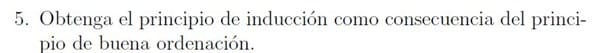 Y el principio de buena ordenación dice que todo subconjunto no vacio A incluido en N posee un menor elemento, es decir, un elemento no € A tal que no <= n para todo n€A.