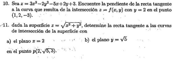10) El plano de corte es y=2, eso significa que es paralelo al eje EQUIS. Luego la pendiente vendrá marcada por la derivada parcial respecto a por
