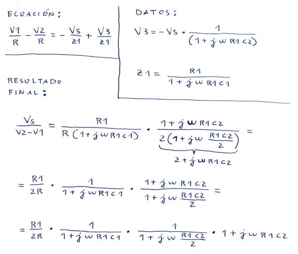 En la ecuación se substituye V3 y Z1 que sabemos lo que son.