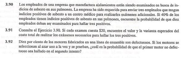 3.91) Debemos construir las probabilidades de que con n empleados se completen tres positivos, por supuesto n>=3. El ejercicio anterior nos ayudará a crear la fórmula general.