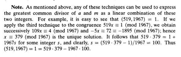 Y esto dice que las técnicas usadas anteriormente pueden servir para calcular el mcd como cambinación lineal de a y m.