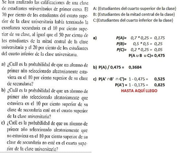 D: {Estudiantes que en secundaria terminaron en el 10% superior de su clase}