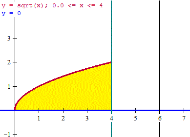 Los ejes de giro son rectas verticales paralelas al eje Y. Lo que haremos serán unos cambios de variable que transformen las rectas x=4 o x=6 en el eje Y y entonces calcularemos los volúmenes con las integrales propias para volúmenes de funciones que giran en torno al eje Y.