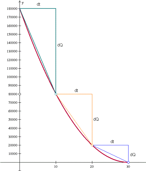 b-Calcular la razón media de salida del agua durante los 10 primeros minutos. Marca diferencial de Q y diferencial de t para el intervalo [0;10].