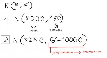 Lo que pasa es que en una parte del tema me expresan una distribución normal como en el [2] dándome un numero de media y en lugar de la varianza me dan ( g^2=10000 ).