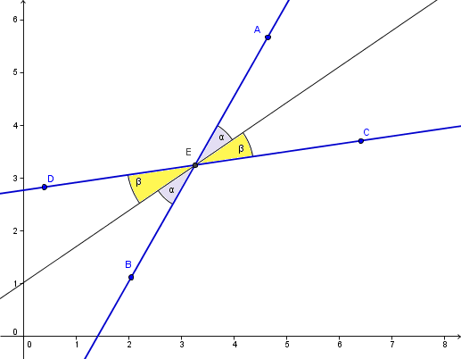 Sean dos ángulos opuestos, entonces la bisectriz de ambos ángulos está sobre la misma recta.