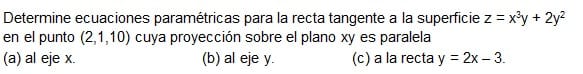 y al pasar por el punto (2,1,10) las ecuaciones paramétricas serán