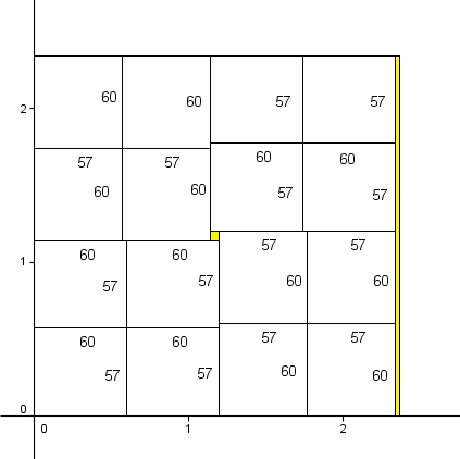 Entonces es rellenar al máximo un rectángulo de 234x237 con cajas 57x60