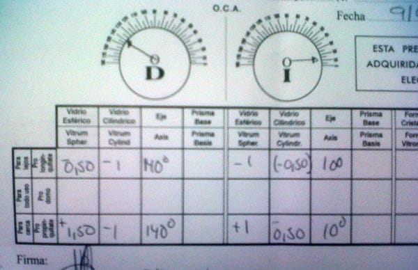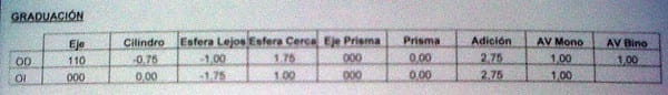 En fin, que al final me encuentro con que he comprado unas gafas progresivas que me tienen muy preocupado, porque a pesar de que en la óptica advertí desde el primer momento que me paso la mayor parte del día delante de varios ordenadores, estas gafas sólo me son útiles para ver de lejos mirando hacia arriba o de cerca mirando hacia abajo, porque a distancias intermedias y mirando al frente lo veo todo borroso. Entonces se me ocurrió comparar las dos graduaciones que me hicieron las jóvenes especialistas, la de la Seguridad Social y la de la óptica, y aunque no soy ningún experto en esta materia me da la impresión de que son bastante diferentes. Motivo por el que le adjunto las fotos de las dos graduaciones para que me dé su opinión profesional al respecto: ¿No será que estas gafas progresivas no están bien graduadas?.