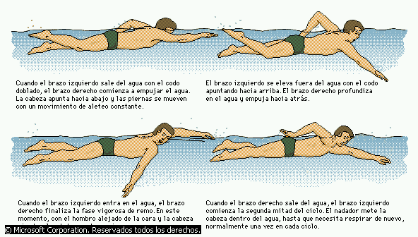 A partir de este momento empiezo el circuito en maquinas con 3 o 4 periodos de 10, 8 y 5 repeticiones lo más rapido que puedo con el peso máximo, lo mismocon las pesas con mancuernas. Acabado el circuito hago 10 minutos de remo esta vez si consiguiendo alternar los dos minutos de esfuerzo máximo con un minuto de mínimo, y acabo con pocos estiramientos y unos cuantos abdominales (12,10,8). Acabando con el gimnasio paso a la piscina donde hago de 6 a 8 largos de piscina (no se nadar estupendamente bien, je je).