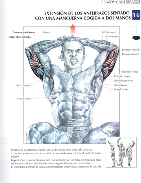Extensión de antebrazos sentado c/mancuerna tríceps (3 series 10 repeticiones 25 libras)