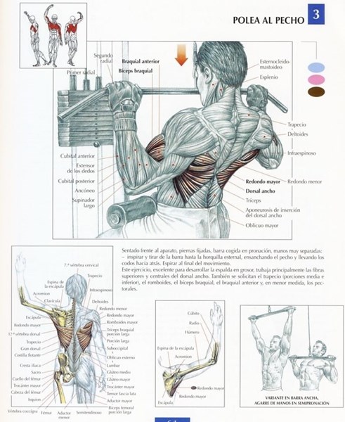 Polea al Pecho c/ agarre amplio (espalda, 3 series de 10 repets, 4 barras peso)