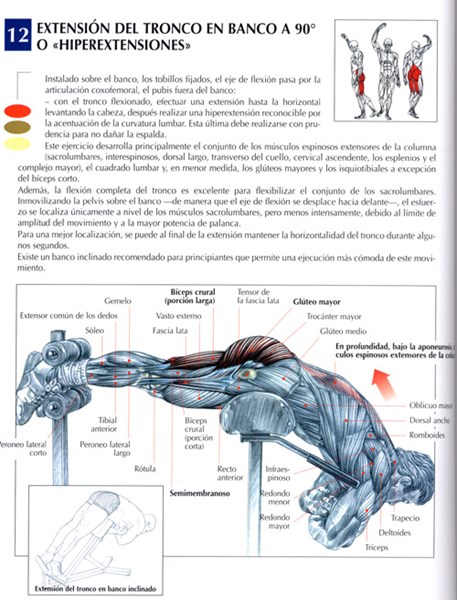 Hiperextensiones (espalda baja, 3 series 12 repeticiones)
