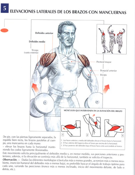 Elevaciones laterales de brazo c/mancuerna p/hombro (3 series 10 repeticiones 15 libras)