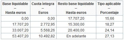 Tabla de IRPF Estatal.
