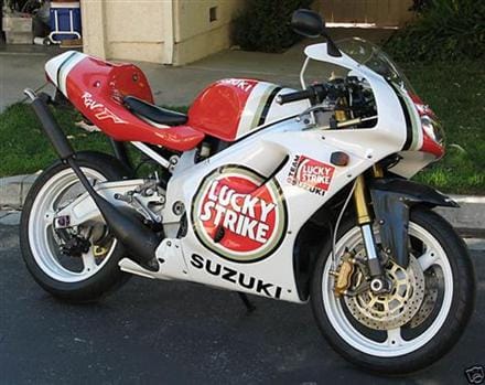 Acabo de adquirir para uso particular una moto del año 2000 pintada replica del equipo Lucky Strike, con lo que lleva el logo de esta marca en el carenado. Es esta: