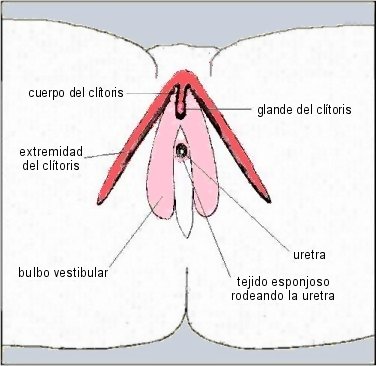 clítoris se divide en dos extremidades, cada uno de las cuales se