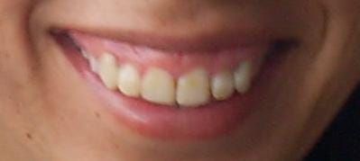 A ella no se le ven, pero a mi si porque se suben más, me gustaría que mi sonrisa fuera "normal", que las esquinas de los labios siguieran la linea resta que deberían, como en esta foto: