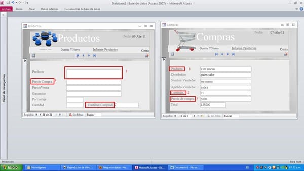 3) Suponiendo que el campo "Precio de compra" es de tipo moneda y tiene por nombre PrecioCompra en ambos formularios: