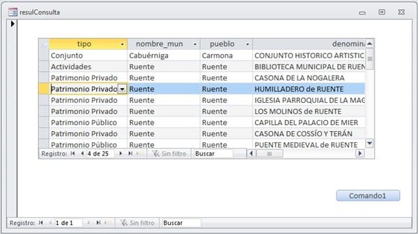 ¿Cómo hago referencia en el código VBA o en otra consulta a un elemento concreto de la hoja de datos que seleccione con el ratón? Por ejemplo el campo "tipo" seleccionado en la foto.