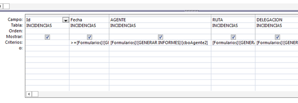 Creo que te estás complicando sin necesidad. Verás, en tu formulario "Generados Incidencias" (creo que era), ya tienes creada la estructura del filtro que necesitas. Lo único que tienes que hacer es copiarla en el código del botón y aplicarla al informe.