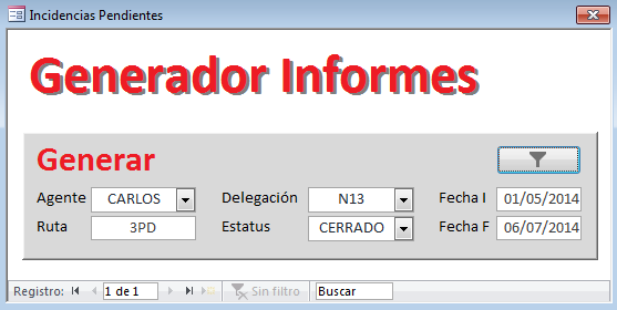 2º/ Copia el código del botón filtro del formulario de incidencias al código del botón del formulario que te abre el informe (Generador de informes)