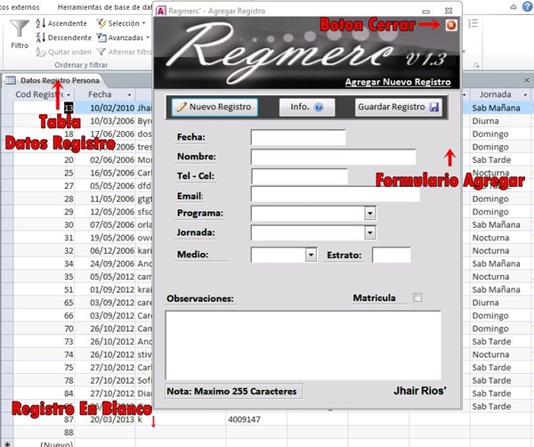el formulario agregar es donde se agregan registros y se almacenan en la tabla datos registro.