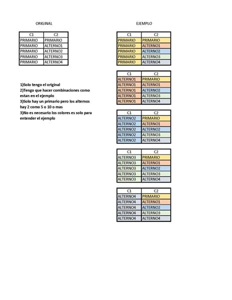 Buenas por favor necesito una ayuda ya sea consulta, sql, vb y todas al mismo tiempo, tengo una tabla que tiene números primarios y alternos, necesito cruzarlos como el ejemplo adjunto.