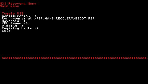 Tu psp estará en modo recovery. (Nada acá puede arruinar la psp, así que no te preocupes, solo ten cuidado que cuando toques algo, lo dejes de la forma que estaba)