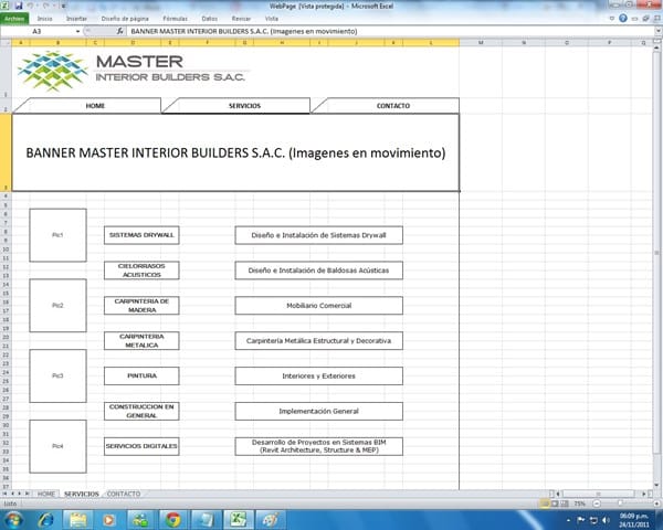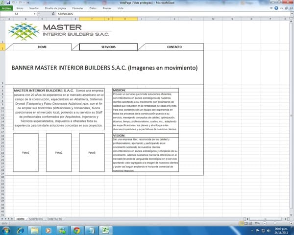 Se trata de una página simple y común, que tenga su logo, varias imágenes en la portada en movimiento, con 3 pestañas como títulos