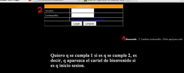 Estoy diseñando una web con un sistema de registro y me gustaría que en la página principal aparezca el formulario para el login y cuando el usuario inicie sesión que aparezca un mensaje de bienvenida (nick)... Tal como esta en la imagen. Yo creo que funcionaria con un if, si no es así corregime.