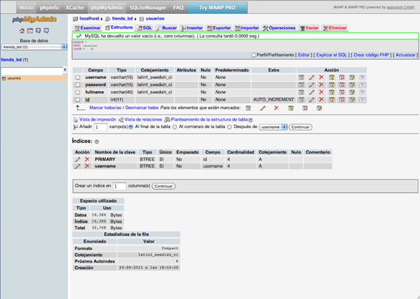 Como dato, comentaros que trabajo en un servidor local (MAMP) bajo Mac OS X. Los datos del servidor son correctos, porque otros scripts si funcionan. Aquí está la dirección del vídeo: