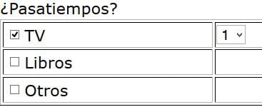 Necesito de su ayuda con este problema que me acaba de surgir, quiero hacer por ejemplo un formulario llamado "Deportes favoritos" en el que hayan 3 campos, en el primero un checkbox, en el segundo un deporte y en tercero un desplegable con las horas al dia que lo practica.